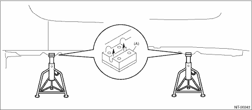 (2) Jack up the rear wheels and set the rigid racks to the specified locations of side sill.