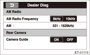 • When the setting is changed, reboot confirmation for frequency switch-over is displayed. Select {OK} to reboot. When {cancel} is pressed, the {Dealer Diag} screen is displayed.