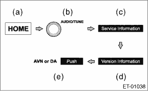 5. Touch the {AVN or DA} (e) to display the {Unit Version Information} screen.