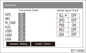 4. Check the connection status with the {Vehicle Signal Check} in the {Line Diag} screen.