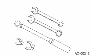 Wrench | Various WRENCHES will be required to service any A/C system.7 — 40 N·m (0.7 to 4.1 kgf-m, 5 to 30 ft-lb) torque wrench and various crowfoot wrenches will be needed. Open end or flare nut wrenches will be needed to affix the pipe and hose fittings. |