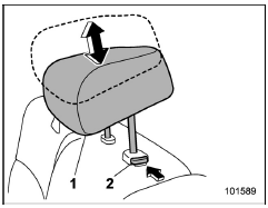 To remove: While pressing the release button, pull out the head restraint.