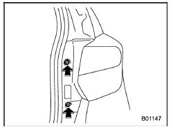 6. Put the rear combination light assembly into place while aligning the 2 guide pins and a catch with the guide holes and a clip on the vehicle.