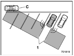 The system may detect that a vehicle (C) is passing in front of your vehicle.