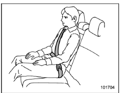 Seatbelts provide maximum restraint when the occupant sits well back and upright in the seat. Do not put cushions or any other materials between occupants and seatbacks or seat cushions. If you do so, the risk of sliding under the lap belt and of the lap belt sliding up over the abdomen will increase, and both can result in serious internal injury or death.