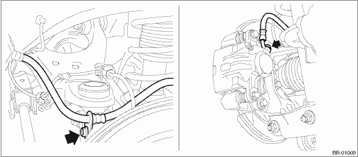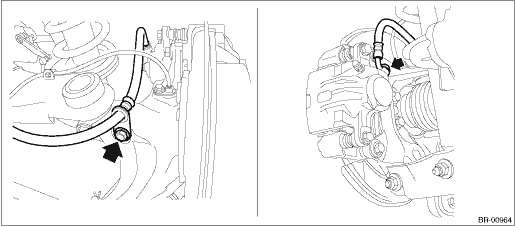 Do not allow brake fluid to come in contact with the painted surface of the vehicle body. If it does, wash off with water and wipe away completely.