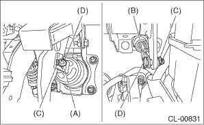 9. Loosen the clamp (C) which connects the air intake boot and throttle body.