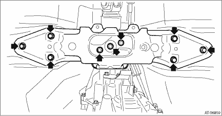 5. Set the transmission jack under the transmission. Make sure that the support plate of transmission jack does not touch the oil pan.