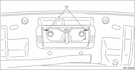 1. Open the front hood, and make alignment marks (A) on both the front hood and the front hood striker by using a marker pen.