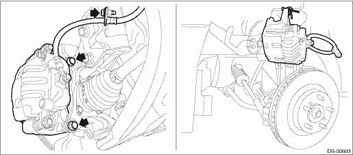 (1) Remove the mounting bolts and the brake hose bracket, and remove the caliper body assembly.