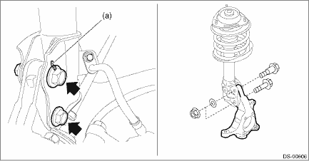 (2) Remove the adjusting bolts and flange bolts for the strut assembly, and then remove the front axle housing.