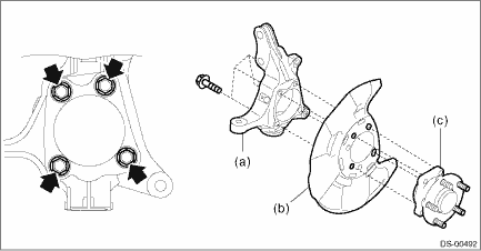 (a) | Front axle housing | (b) | Front brake back plate | (c) | Front hub unit bearing |
