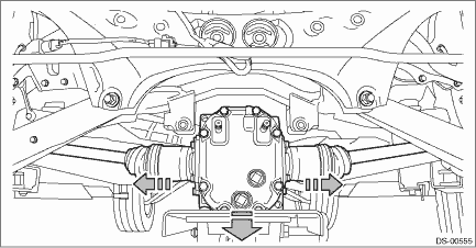 9. Completely pull out the rear drive shaft assembly while lowering the rear differential.