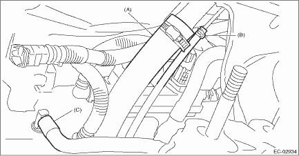 13. Remove the bolt and clip (A) which secure the leak check valve assembly to the vehicle, and remove the leak check valve assembly.