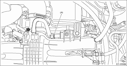 3. Disconnect the vacuum hose from the intake manifold and intake manifold clip (A).