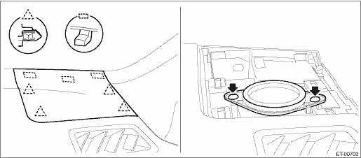 (3) Disconnect the connector and remove the speaker assembly - tweeter.