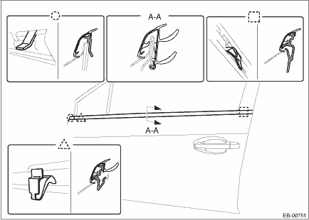 • Do not reuse the weather strip outer. Always replace with a new part.