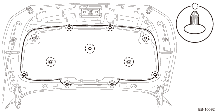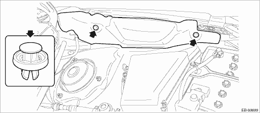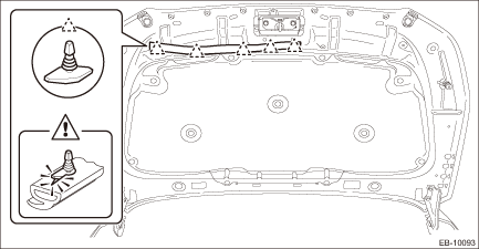 If the weather strip clip is removed with excessive force, the seal - front duct may be damaged. Be sure to use clip remover, etc. to remove.