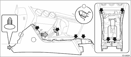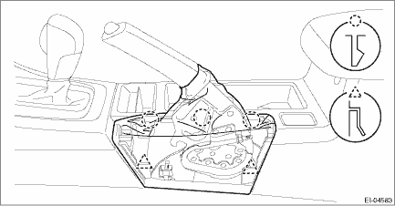 (2) Release the clips and claws, then pull up the cover - shift lever.