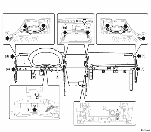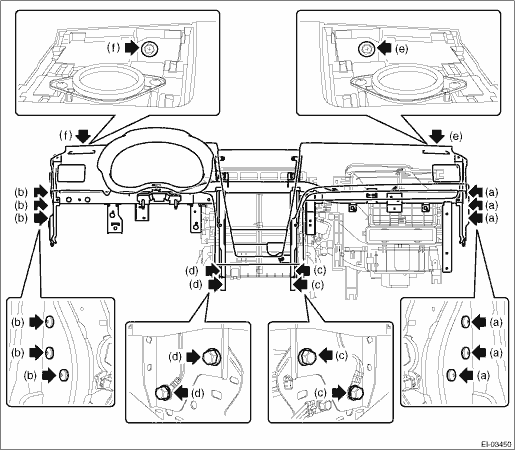 • Be careful not to damage the airbag system harness when servicing the instrument panel. Damage may cause the system to malfunction.