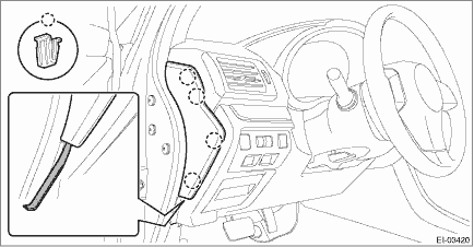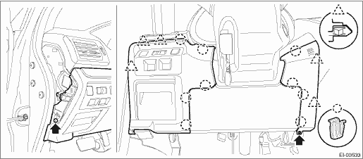 2. Remove the clips, and remove the cover - instrument panel side LH.