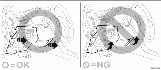 When removing the cover assembly - instrument panel LWR driver, be sure to pull it toward you. If attempting to remove by turning it upward, the claws may be damaged.