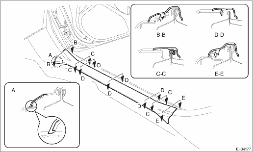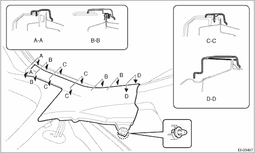 Do not pull with excessive force. Doing so may damage the claws of the cover side sill - rear INN.