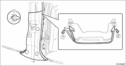 (2) Expand the claws of the trim panel - center pillar LWR outward, and remove it from the trim panel - center pillar UPR.
