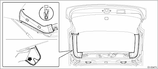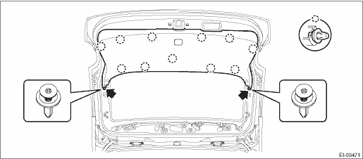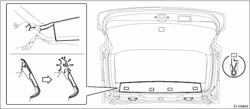 (2) Release the claws in the center of trim, and remove the trim panel - rear gate UPR.