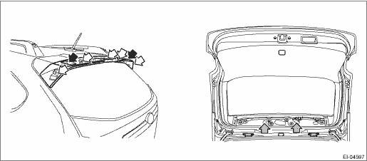 (4) Remove the nuts, and remove the roof spoiler assembly.