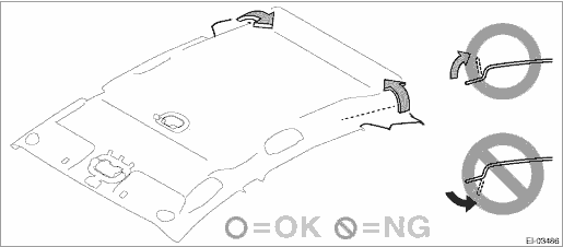 Be careful of the bending direction. If the direction is wrong, the trim panel - roof assembly may be wrinkled.