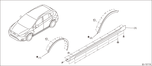(1) | Garnish ASSY - fender | (2) | Garnish ASSY - rear quarter | (3) | Garnish ASSY - side sill |