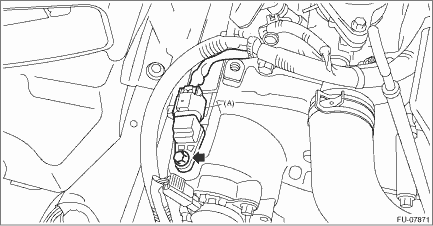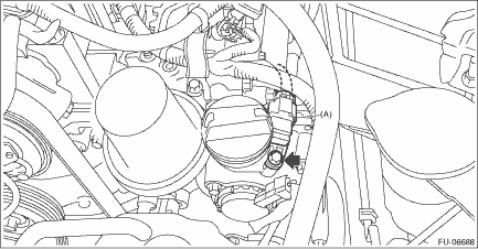 3. Disconnect the connector (A) from the camshaft position sensor, and remove the camshaft position sensor from the chain cover.