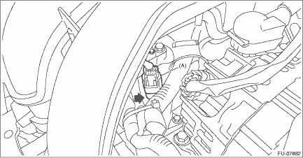 3. Disconnect the connector (A) from the engine coolant temperature sensor, and remove the engine coolant temperature sensor.