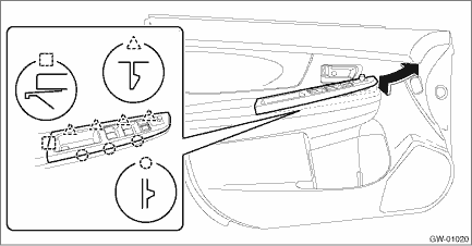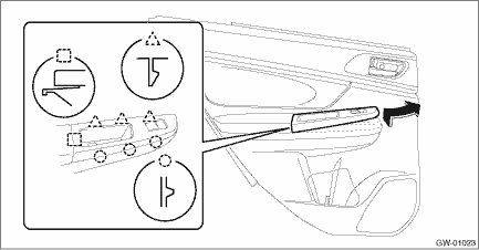 For removal of the switch - power window sub front on the passenger’s seat, refer to the removal procedure of the switch - power window main. Power Window Control Switch > REMOVAL">