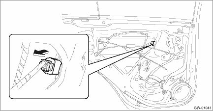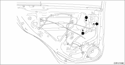 4. Remove the glass assembly - rear door. Rear Door Glass > REMOVAL">