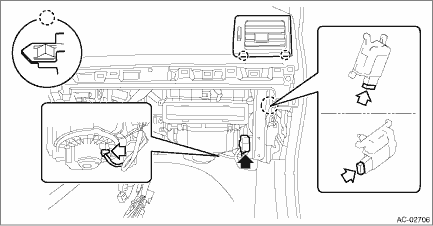 (1) Release the claws, and then remove the grille assembly - ventilation RH.