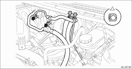 5. Remove the clips and bolts, and remove the hose - pressure suction and the pipe - evaporator cooling from the expansion valve - cooling.