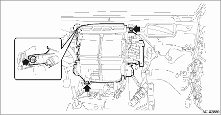 (2) Remove the bolt and nuts, and remove the heater & cooling unit assembly.