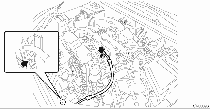 (1) Remove the cable clamps and bolts, and remove the battery cable stay.