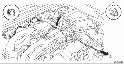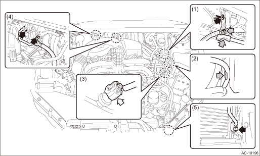 • Seal the disconnected hose, compressor and engaging part of compressor with a plug or vinyl tape to prevent foreign matter from entering.