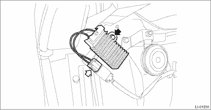 (2) Remove the bolts, then remove the resistor assembly - daytime running light.