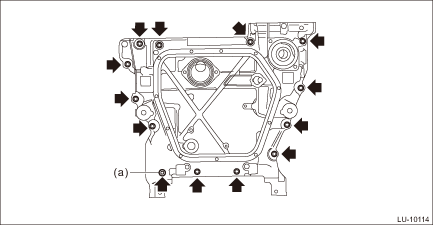 13. Remove the clutch housing cover from the oil pan upper. (MT model)