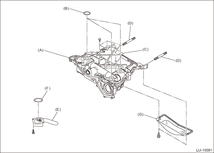 (D) | Stud bolt | (E) | Oil strainer | (F) | O-ring |