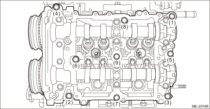 10. Loosen the bolts holding the cam carrier LH equally, a little at a time in numerical sequence as shown in the figure and remove the cam carrier LH.