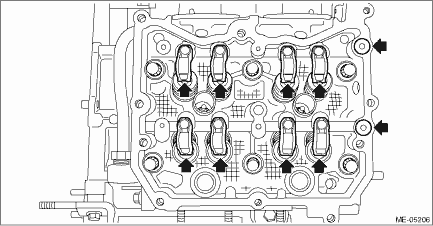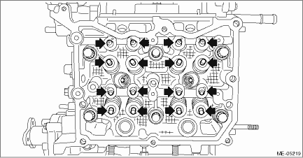 12. Remove the valve shim and the roller rocker arm pivot from cylinder head LH.
