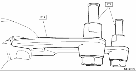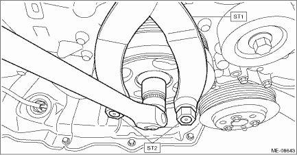 3. Use the ST to lock the crank pulley, and remove the crank pulley bolt.