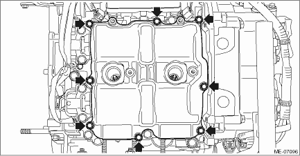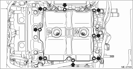 5. Remove the rocker cover gasket RH, #1 spark plug pipe gasket and #3 spark plug pipe gasket, and remove the liquid gasket.