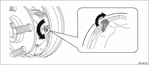 (1) Rotate the cup - shoe hold-down in the direction of the front side of the vehicle.