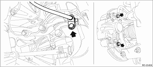 (1) Remove the bolts and then remove the brake hose bracket and caliper body assembly.